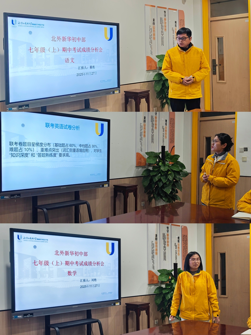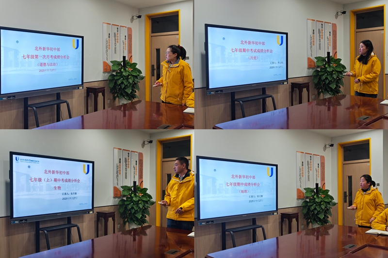 近日,北外新华初中部七年级组圆满完成了本学期的期中学业评估。为系统总结前一阶段的教学成果,明确下一阶段的工作方向,初中部七年级于11月27日隆重召开了期中成绩分析会。会议立足数据、聚焦过程,旨在凝聚共识、优化策略,共同谋划教学高质量发展的新路径。本次会议由马丙锋组长主持。